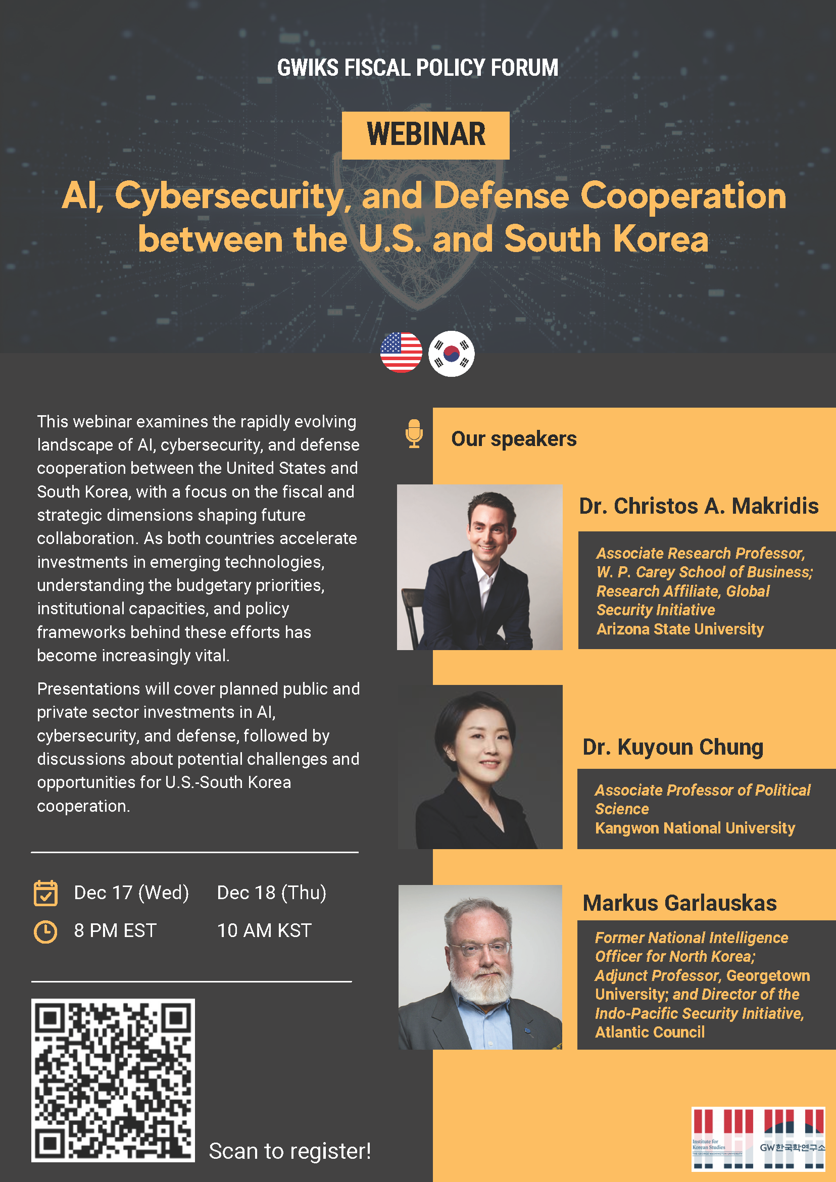 [GWIKS] Fiscal Policy Forum: AI Cybersecurity, and Defense Cooperation between the U.S. and South Korea