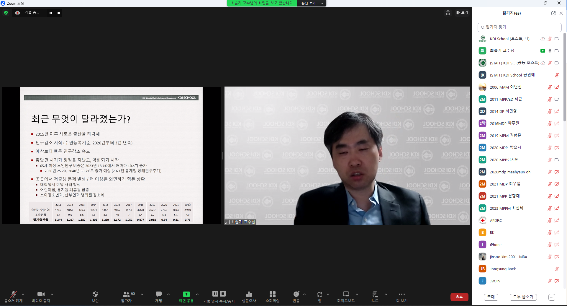 2023년도 제5회: 인구문제, 저출산과 고령화 (최슬기 KDIS 교수)