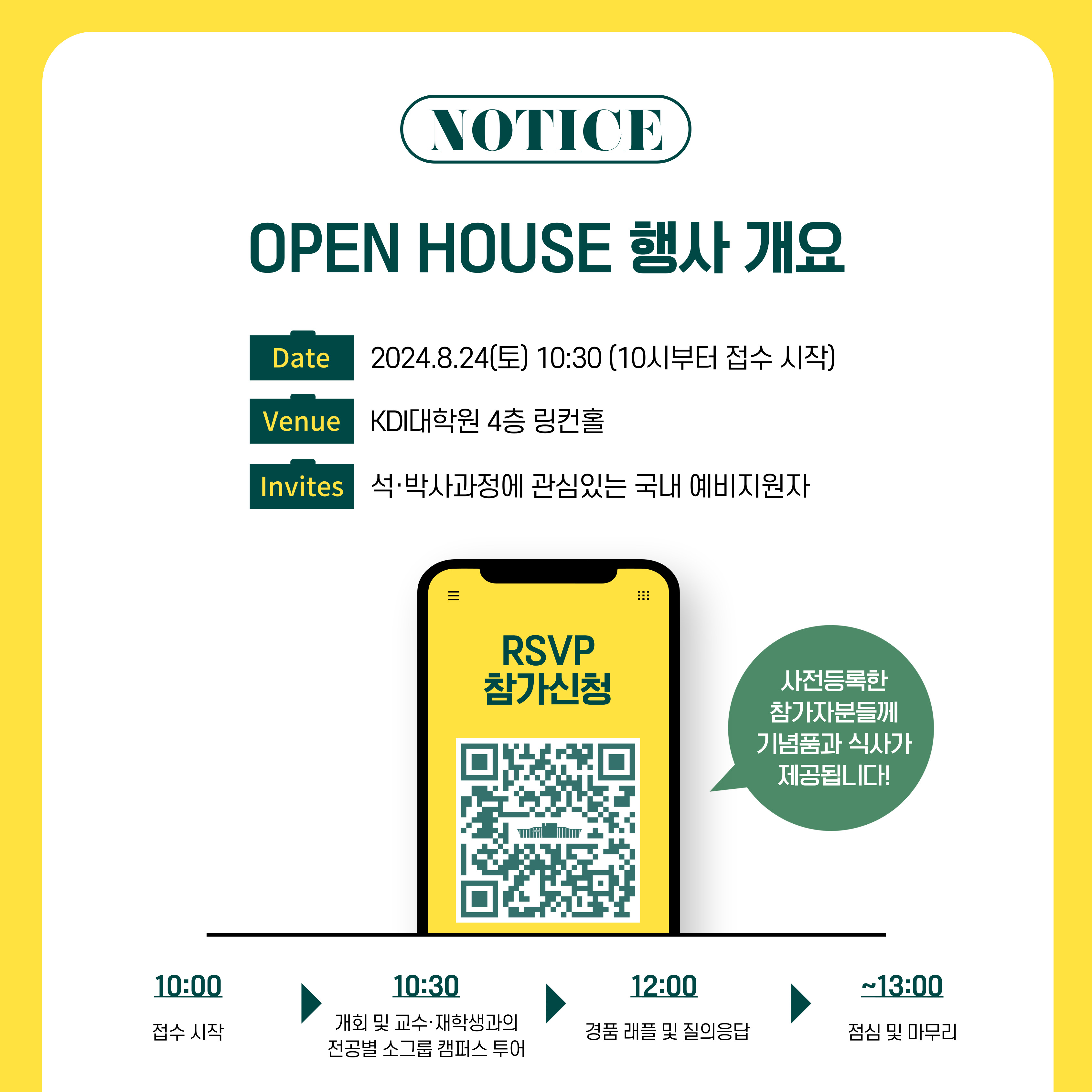 We kindly invite you to the upcoming 'Open House Spring 2025 (Information Session)' scheduled for 10:00 a.m. on Saturday, August 24th, at KDI School Auditorium (6th Floor).