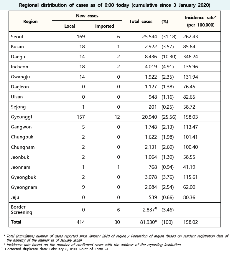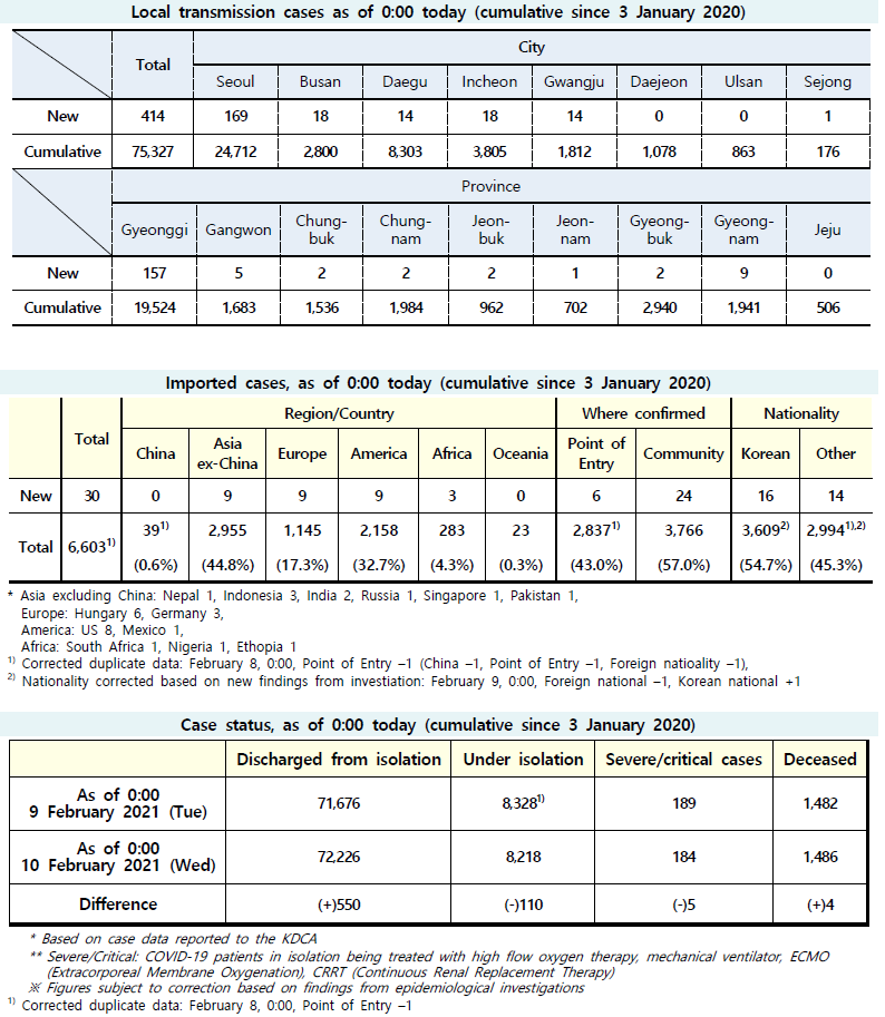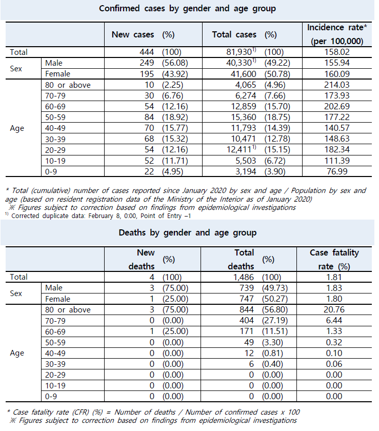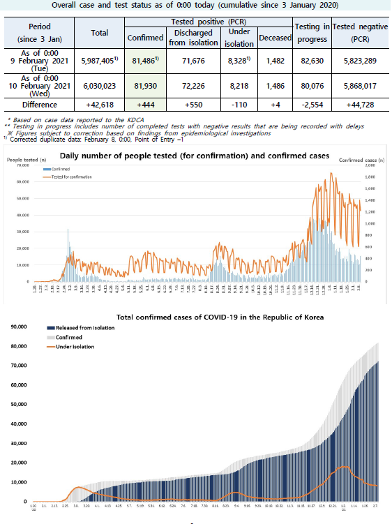 The updates on COVID-19 in Korea as of February 10 from KCDC (+444)