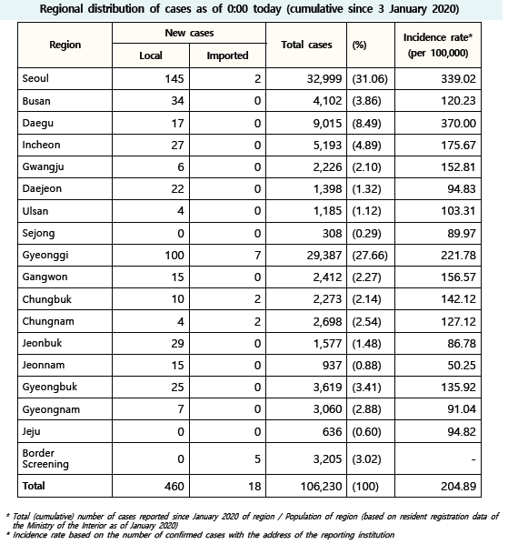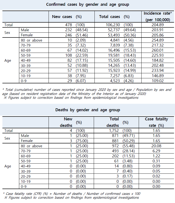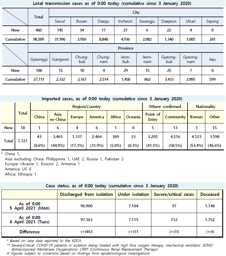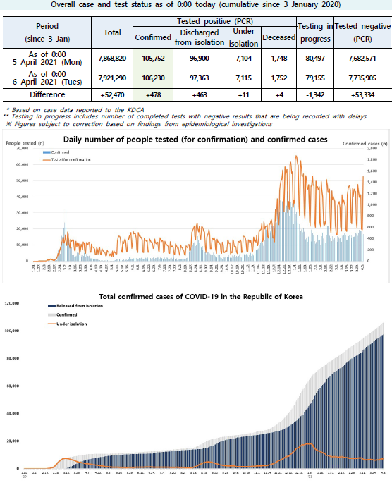 The updates on COVID-19 in Korea as of April 6 from KCDC (+478)