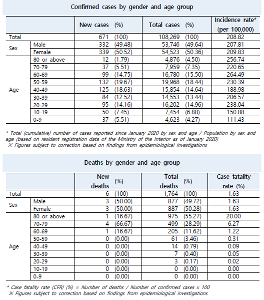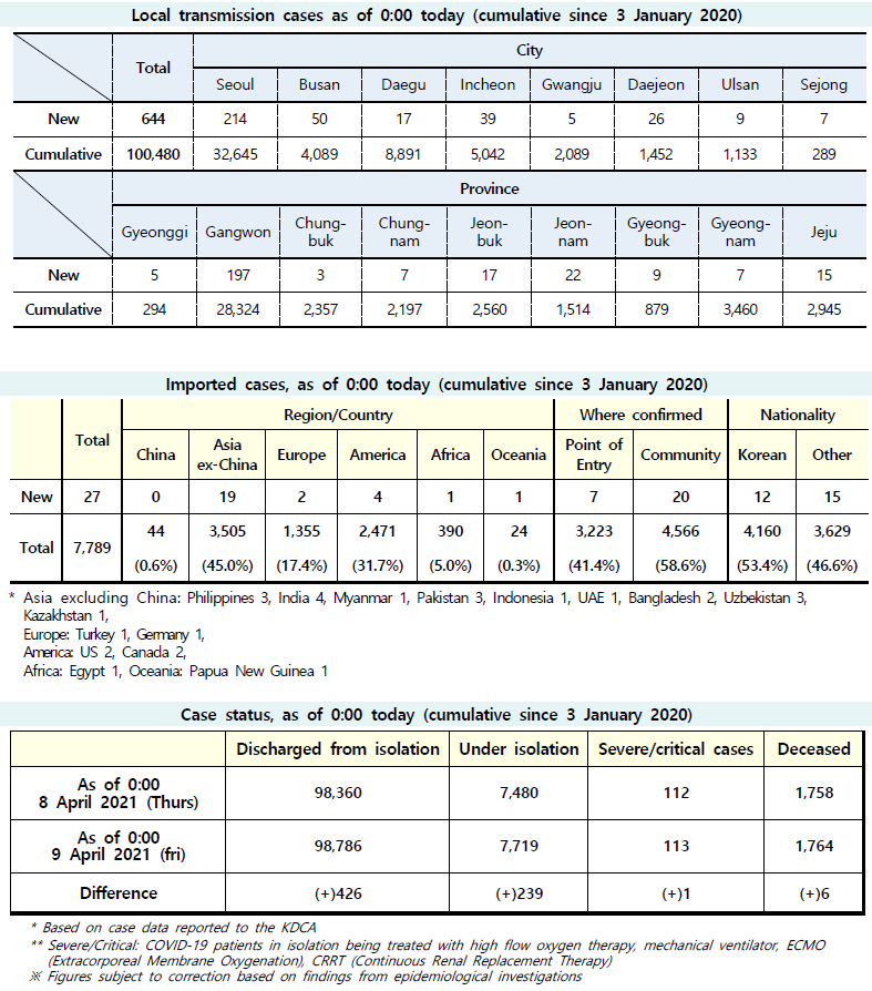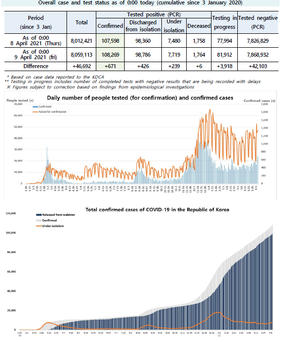 The updates on COVID-19 in Korea as of April 9 from KCDC (+671)
