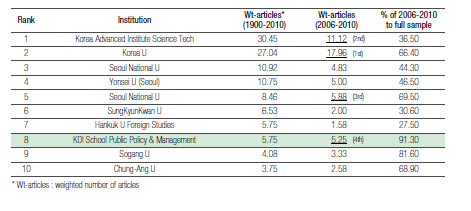 Table 1 Financial research productivity among Korean academic institutions (1990 – 2010, 2006-2010)