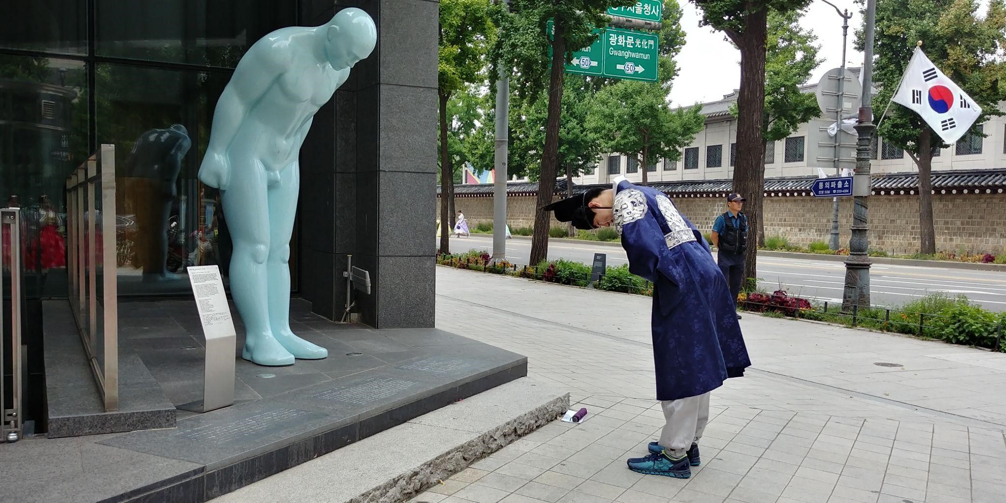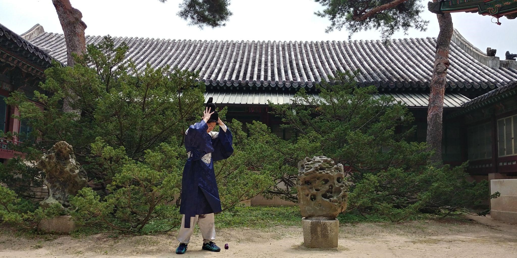 2. A Spontaneous Bow: While strolling around near the palace, Chaehoon encountered a unique moment. "While walking around in Hanbok, I saw a statue bowing and bowed back to it." His photo submission beautifully illustrates this spontaneous interaction, showcasing an authentic connection with the traditional surroundings.