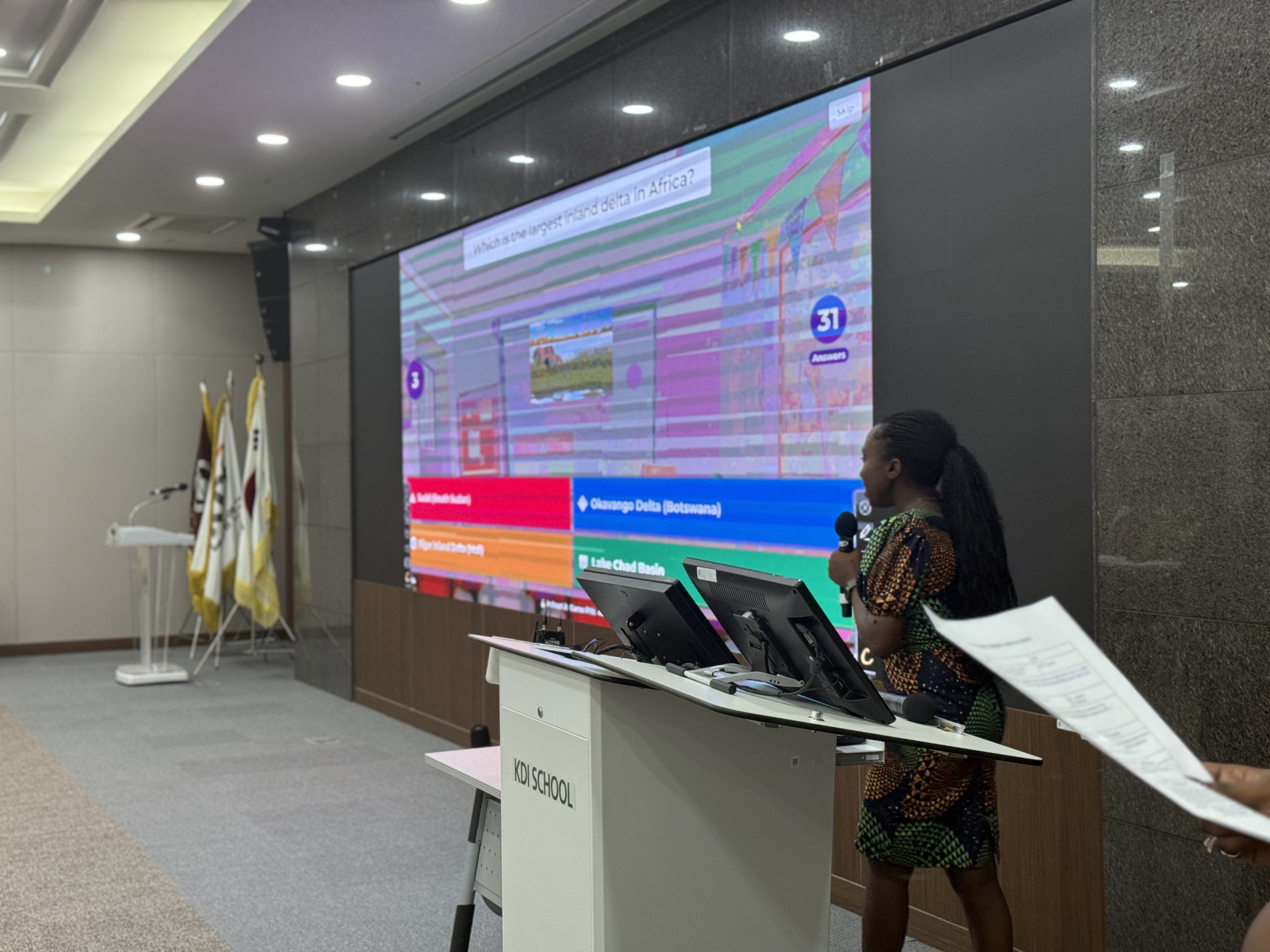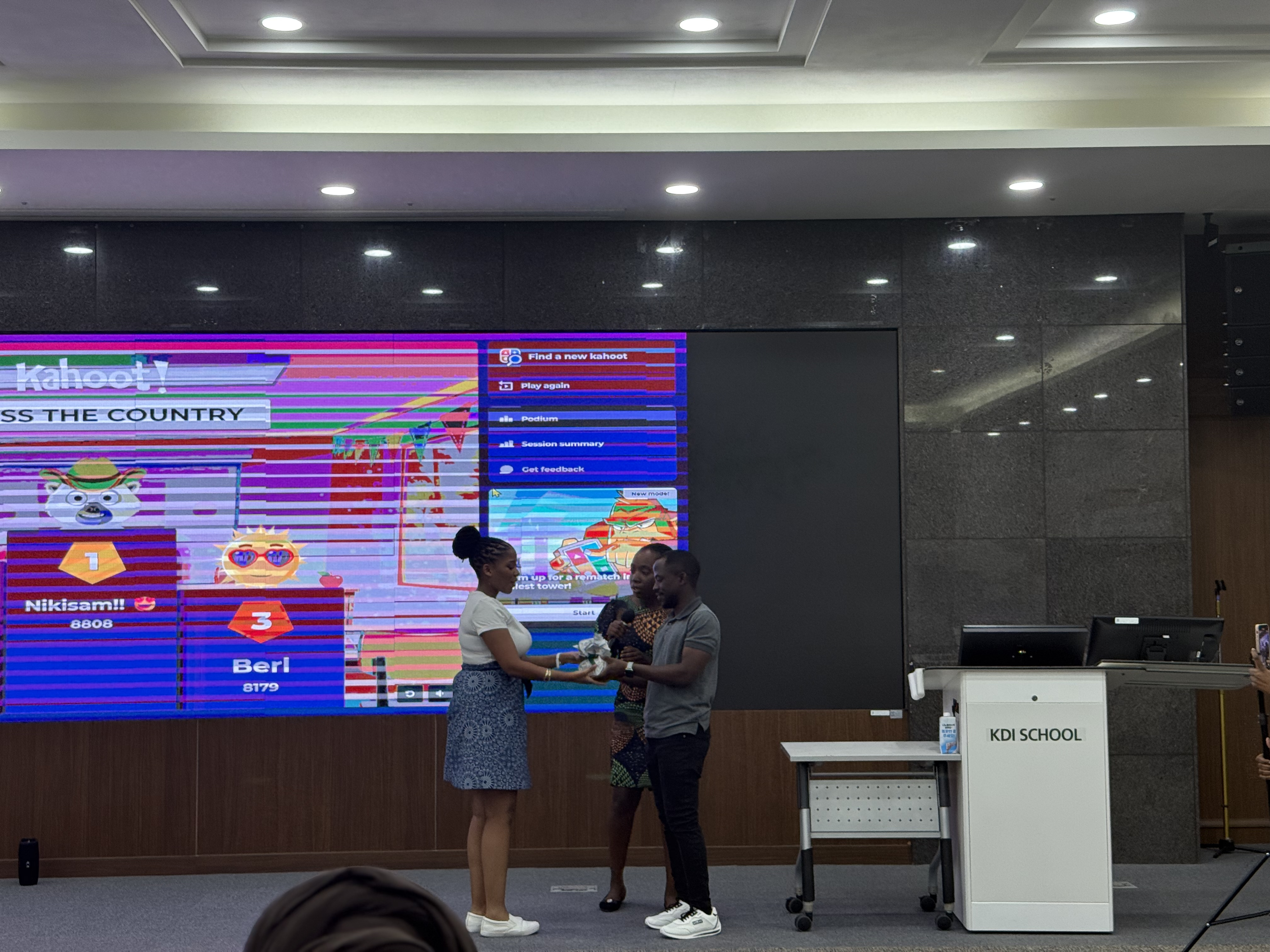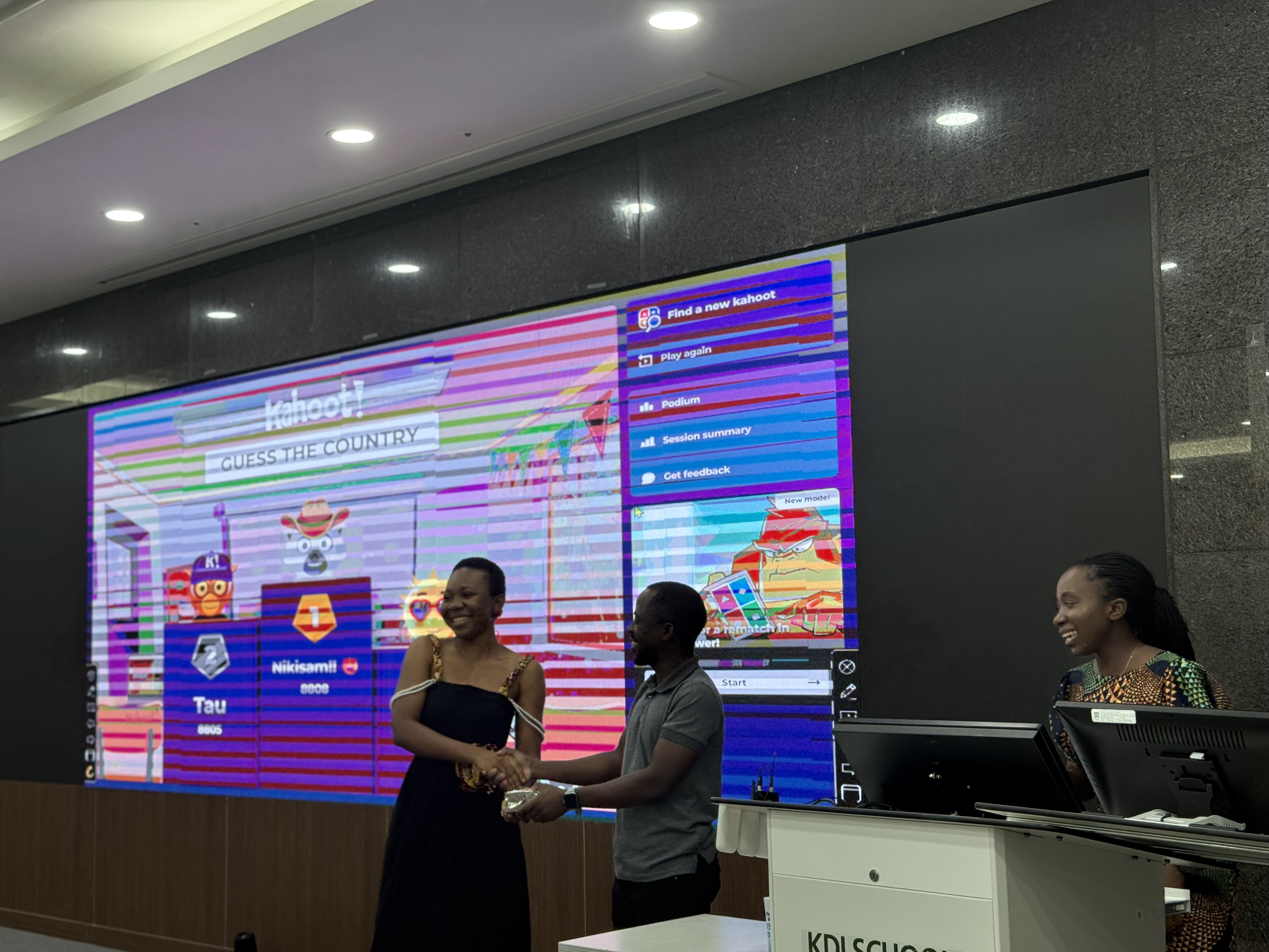 Beyond the speeches, the ceremony highlighted the vibrancy of the African community at KDIS through interactive activities. A central feature was the panel discussion with ADF PhD students—Francis, Ianja, and Richard—joined by a GKS scholar, Richmond. The panel provided the new cohort with candid insights into both academic and social life at KDI School and in Korea. The discussion centered on three themes: academic advice, social integration, and leveraging opportunities. Panelists shared strategies for handling coursework, engaging with professors, and balancing research with personal growth. They also spoke openly about adapting to life in Korea, offering guidance on building friendships, maintaining cultural identity, and navigating everyday challenges. For many participants, this was one of the most valuable parts of the program. As one reflected in the anonymous feedback survey, “The panel session was very helpful. Hearing honest experiences about life at KDIS and in Korea made me feel better prepared to face both academic and social challenges.” The session was highly interactive, giving the incoming students the opportunity to raise questions they had long been curious about—from academic workload to career pathways and student life in Korea. This exchange created an atmosphere of openness and trust, reinforcing that ADF is more than a club, it is a family.